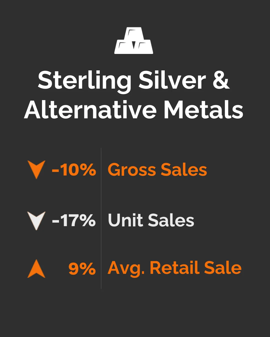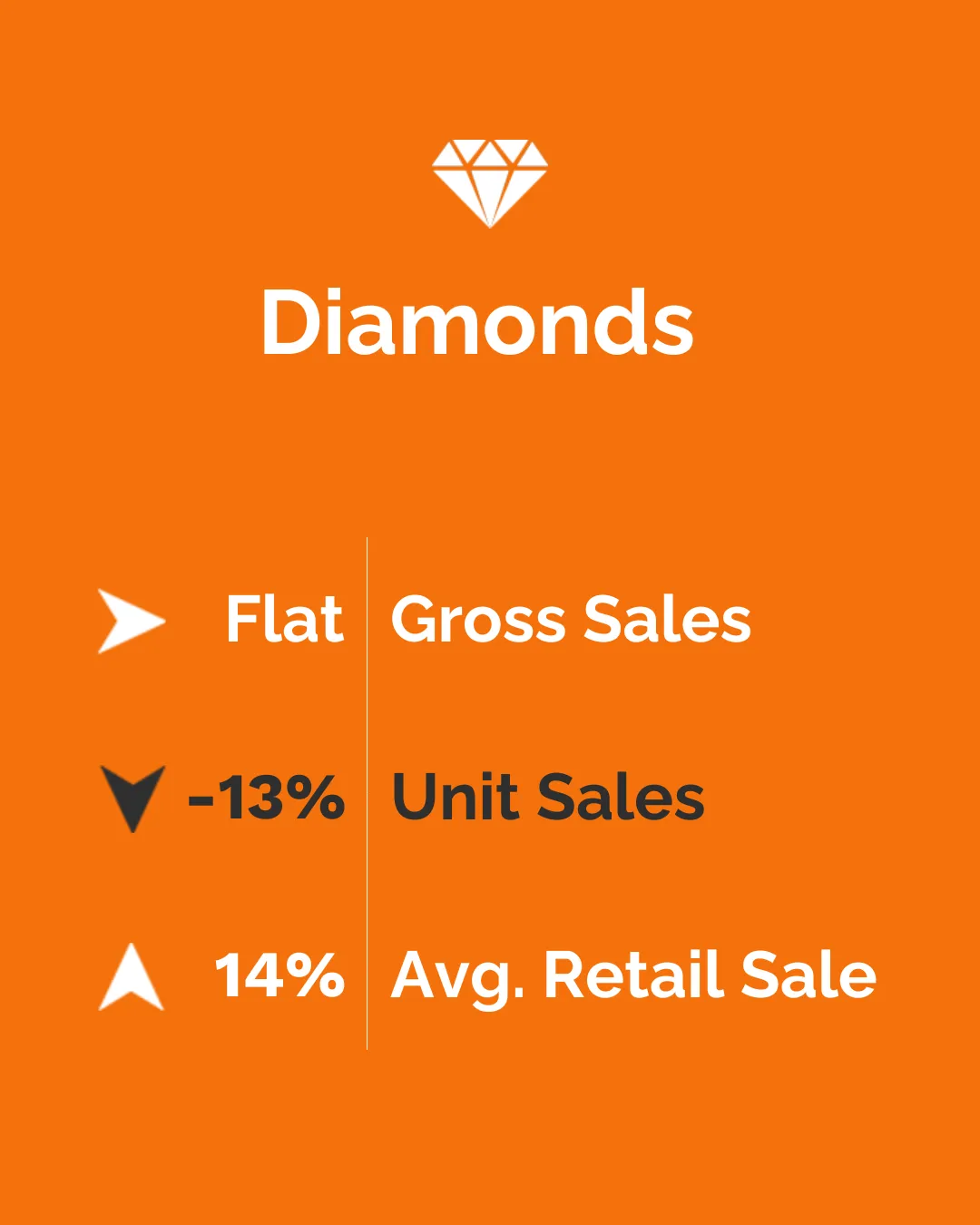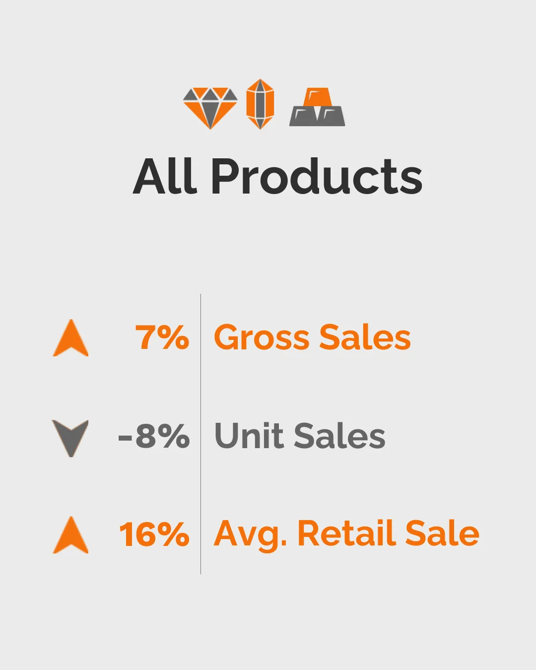 Average retail was up across every major category, with colored stones showing the largest increase, underscoring the ongoing momentum in differentiated and emotionally driven product offerings.